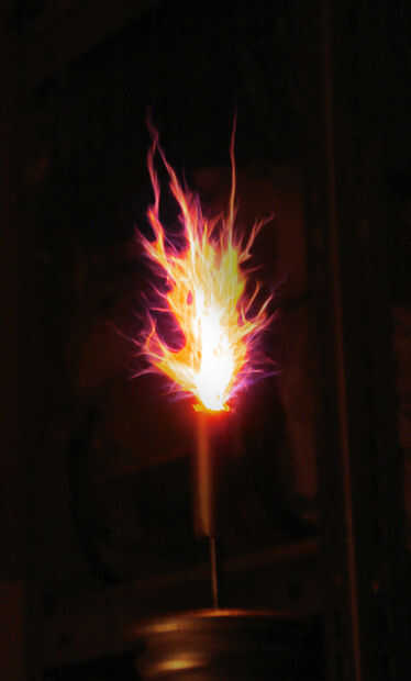 Puede utilizar productos químicos para las descargas de color! Esto es realmente simple. Sólo consiguió algunos productos químicos de la cocina (NaCL; D) y de mi viejo kit de experimentos químicos y colocar en tubos de cerámica que puse encima el topload. ¿Los resultados son bastante impresionantes (se ven mejores en real!), aunque esto no puede ser sano en todo lo puede? Por favor no arroje sustancias químicas al azar en las llamas! Utilice Google primero :)