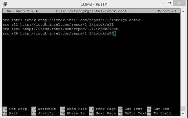 Sin importar la aventura de como decepcionante el paso anterior fue, todavía podemos llenar unos vacíos en asegurarse de que todo en la Edison es la forma de barco. Parte de está agregando repositorio de software de Intel para el gestor de paquetes en el dispositivo. Para hacer esto, abrir una conexión SSH y entrar
