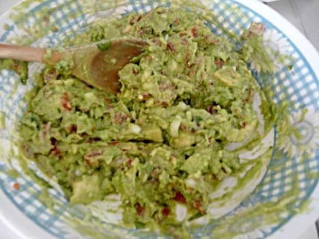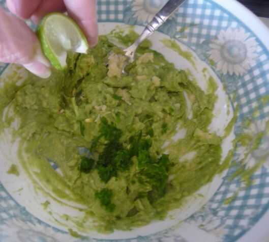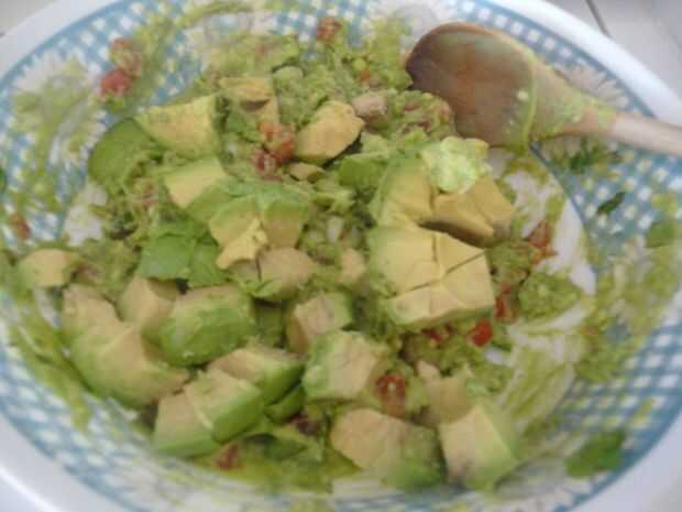 Sacar la carne en un tazón grande y aplastar con un tenedor. (Si te gusta un guacamole estilo grueso (hacer) reserva 1 aguacate e incorpore los trozos en cubitos al final.)