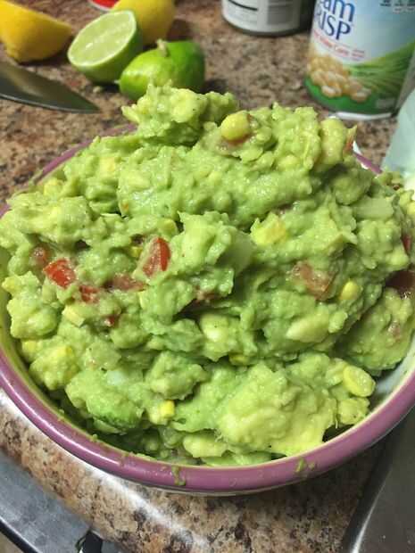 Hola MunchPak este es nuestro snack favorito para compartir con amigos y familiares cuando el juego está en. Es maíz Spiced guacamole casero sal, pimienta y un poco mozzarella espolvoreadas por encima. Es un pleaser de la muchedumbre y sabor increíbl
