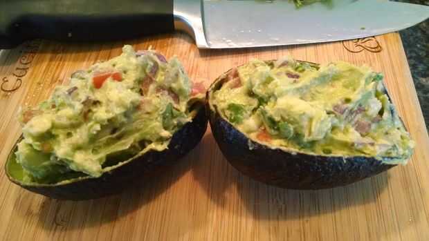 Guacamole Bacon en ~ la ~ la mitad ~ shell