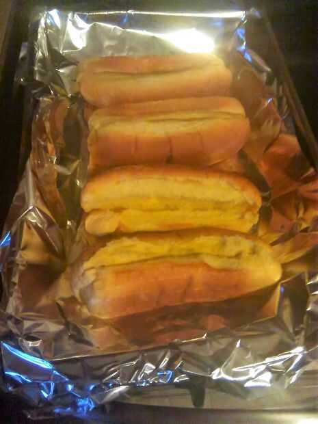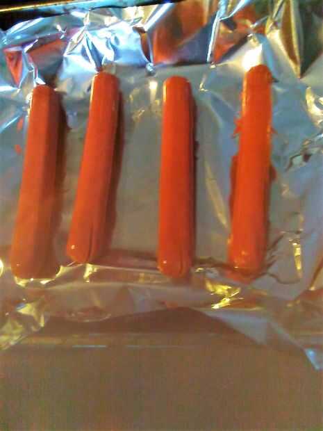 Partido de Hot Dogs en parcialmente la mitad y colocar en una placa para horno aceitada