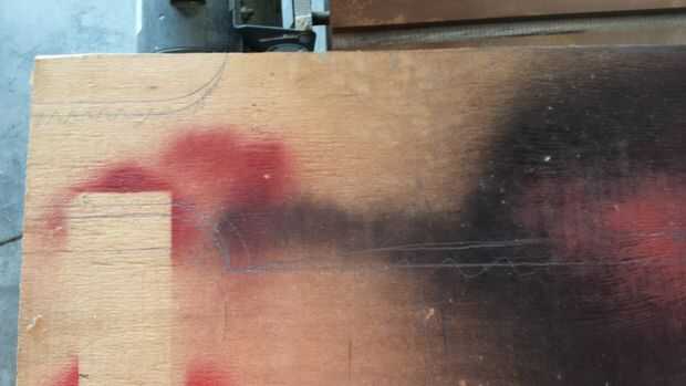 Utilice un lápiz para dibujar la forma de la hoja sobre un pedazo de madera contrachapada de 1/2". Se puede ver en las fotos, me tomó varios intentos antes de que yo estaba finalmente contento con el diseño. Para mí, esta fue una de las partes más difíciles del proyecto, pero tal vez es porque soy un perfeccionista.