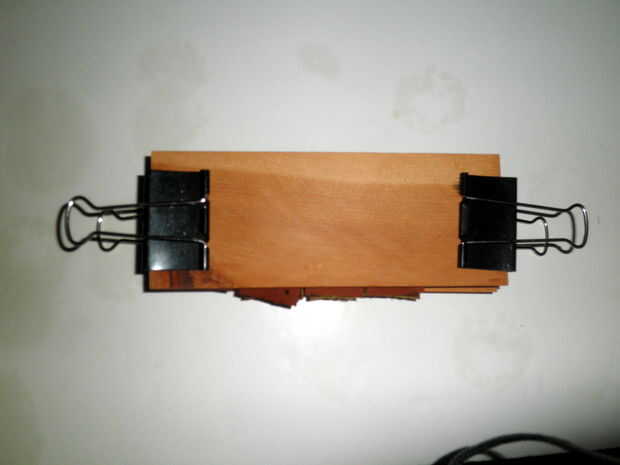 Luego coloque su piel en forma de lo que cada vez que desee utilizar. Yo quería una forma de la curva para las piezas de dedos y algunas piezas de bambú que había sido dividida por la mitad. También se utiliza dos piezas de madera que se sujeta alrededor de algunas de mis piezas. No estaba contento con cómo resultó. Había arrugada la piel, pero todavía funcionaba bien. También construyó una forma de legos y utilizar algún rincón de la PVC.