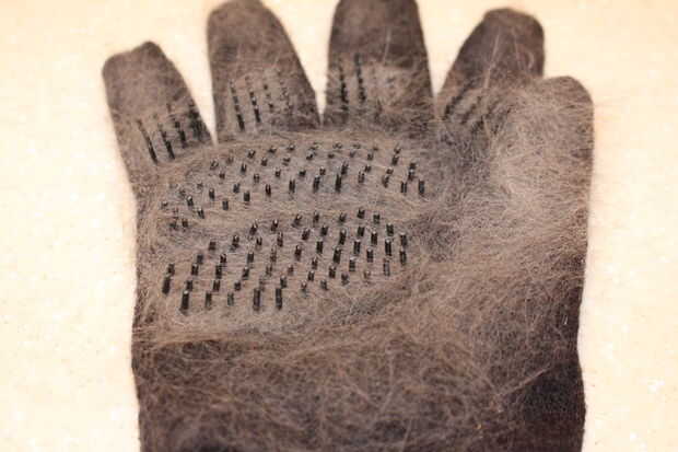 Ni uno de los dos va a quedar siendo el cepillo, pero amor, amor, les encanta ser acariciados y rayado; así que sobre buscando un guante cepillo para mascotas para ellos. Encontré que hay varios para elegir pero ninguno que me gustó. Eran sobre todo plástico duro que correas a su mano o Mickey Mouse grande gordo buscando guantes.