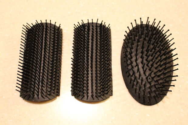 Las cerdas de tus pinceles deben sujetarse a una pieza de goma flexible. Usted tendrá que quitar las piezas de goma del mango del pincel. Realmente no puedo decir la mejor manera, sea creativo, que no debería ser muy difícil. Usé un par de pinzas para frenar el plástico del cepillo.