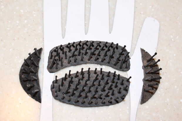 A continuación, con el pincel en su mano, tome nota de dónde cortar en el centro donde se dobla la palma. Hacer el corte y recorte cada pieza con un boquete pequeño entre ellos.