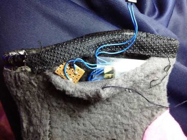 -Coloque la placa de circuito en la parte inferior del guante y cosa para arreglarlo.