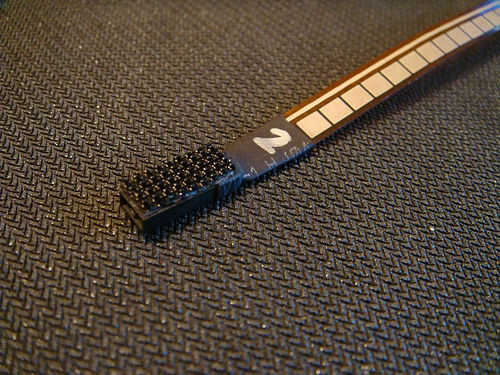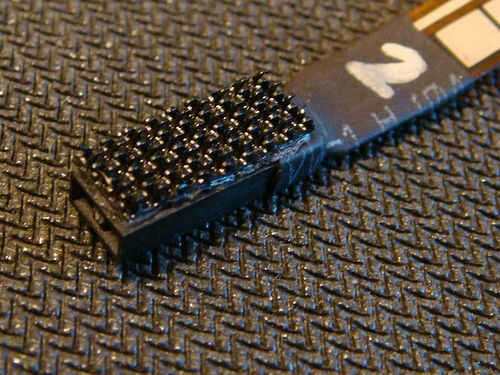 Ahora, pega el gancho cubierta del sensor de la flexión de secciones de Velcro en la parte superior de cada uno. La parte superior del sensor flex es el lado con el pálido cuadrados en él.