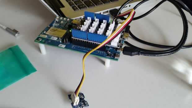 Conecte el protector del sensor grove y conectar el acelerómetro de 3 ejes para una de las conexiones i2c en el escudo.
