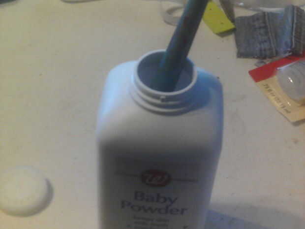 una vez todo seco, puede quitar el guante, si su látex es todavía pegajoso, que se puede utilizar polvo de bebé (ligeramente) encima del guante y del interior como