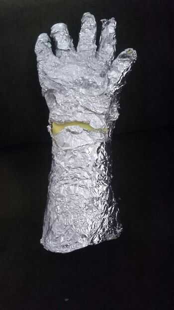 que no sea comprando un juguete de $5 en walmart que tiene un guantePaso 1: No Ironman sin los guantes de alta tecnología Hacen el guante por la medición de su mano lo que hice fue poner mi palma sobre la cartulina y medido hasta el principio de mis