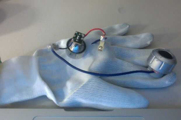 Meter el cable que conecta el botón a través del guante.
