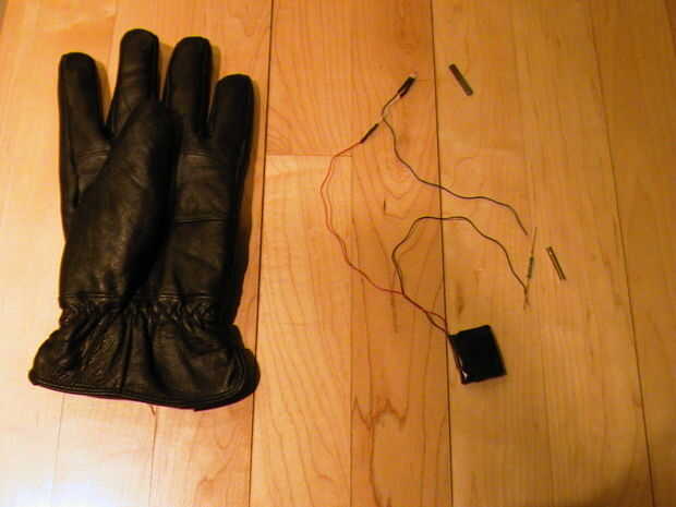 de piezas simples todos los días puede hacer este guante que tiene dos modos. Modo 1 es una salida constante de un poco más de 300 v. mientras que modo 2 tarda unos segundos en cargarse, pero desprende un choque mucho más doloroso. Todos que la tensi