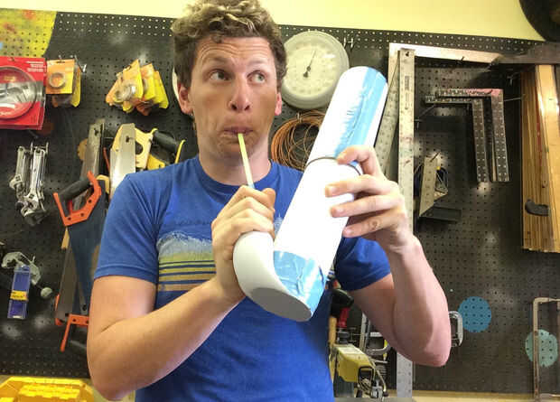 La gran cosa es tirar el guante para que esté bien tenso a lo largo de la parte inferior del tubo. Una manera aseada, la respiración llena el guante con aire, y una vez que la presión se hace suficientemente grande, elástico del guante amplía un poco para dejar que el aire a través de. Para obtener tonos gran bamboleo, moviendo el tubo.