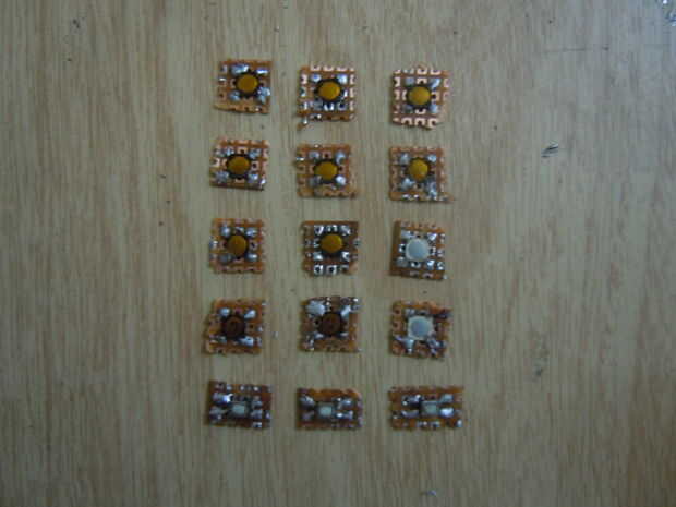 Todos los segmentos requieren cada interruptor así que corte el PCB en 15 segmentos.