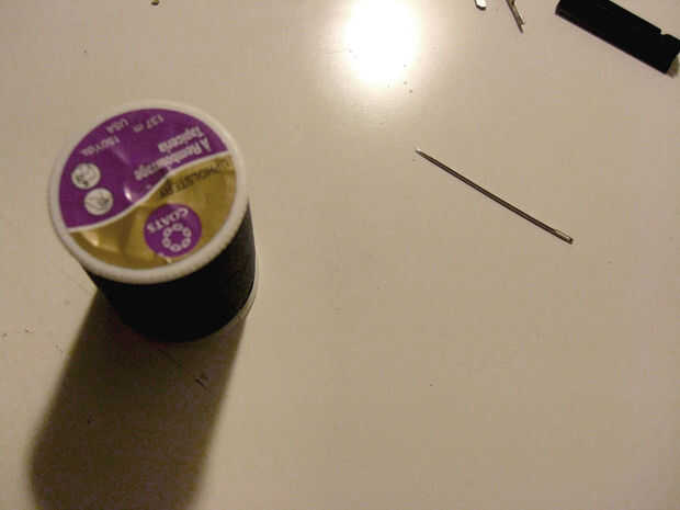 El tipo de aguja usas debe ser un calibre bastante grueso por lo que no encaje y empujar hacia fuera el globo ocular, y la banda de rodadura que estamos utilizando aquí es un pesado de nylon con una capa de brillo. Realmente nada funciona, sólo asegúrese de que está usando un hilo grueso que realmente no quieras esto para despegarse.