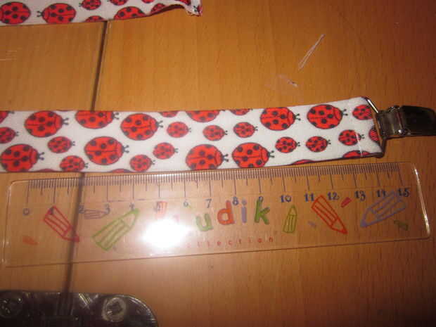 • usted toma su primer protector de manopla (clip aún conectado) y se corta el elástico por lo que es alrededor de 14cm de largo.