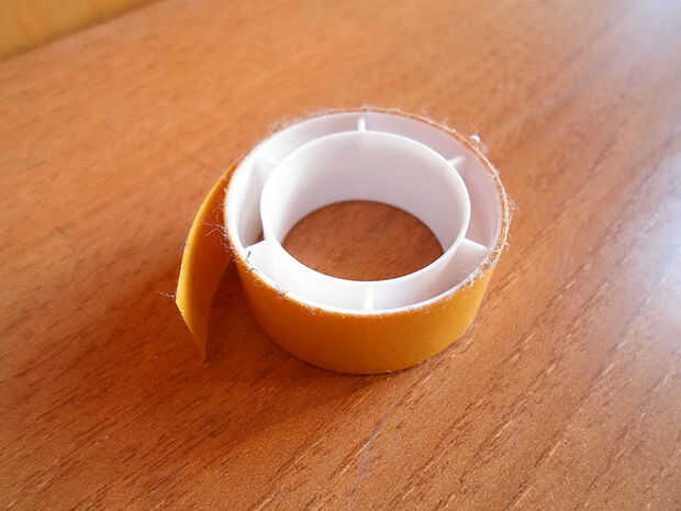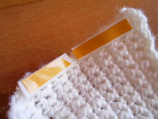 Cortar unos pedazos de cinta de doble cara y pegue al lado libre de velcro.