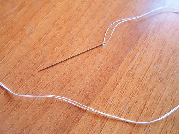 Al tratar de la manopla de mi ratón de la computadora, me di cuenta de que la pieza de la nariz era demasiado largo. Por esta razón, decidí doblar por la mitad, más o menos y cosa parte con hilo blanco para asegurarlo.
