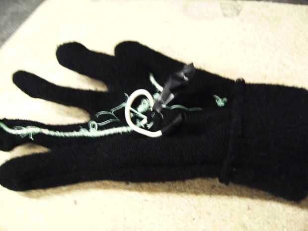 Luego, simplemente cosí el cable en el guante. Hubiera preferido usar hilo conductor, pero no lo hice el tiempo para ordenar en línea y era demasiado tímido para preguntar a Becky si pude barrow algunas de ella (yo soy de un idiota, sé).