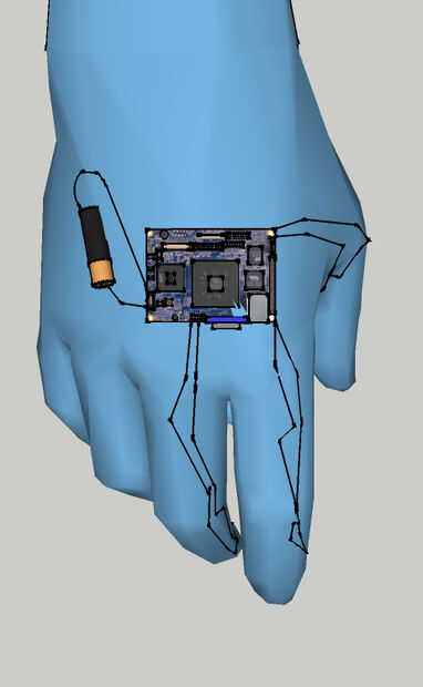 Mida la longitud de los cables necesarios necesarios para ampliar los botones para las yemas del dedo correspondientes (izquierdas, centro y derecha). Luego tira de los cables, asegurándose de que a sauter un extremo de cada cable a las piezas de metal de los botones y los otros extremos en los agujeros correspondientes en la placa de circuito (Asegúrese de enhebrar los cables por los agujeros).