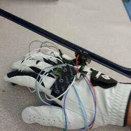 Con el velcro, pegamento y cinta aislante, conecte el circuito Junta y unidad de alimentación en la parte posterior de la mano, los botones de clic justo debajo de las puntas de los dedos (para permitir el uso del ratón y escribiendo en el mismo sistema) y el sensor de infrarrojos en la palma del guante. Utilice la cinta para mantener los cables en su lugar y mantener cubierto de metal.