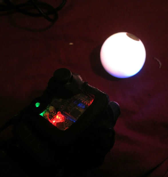 Para mi maestría en la tesis de diseño de interacción en la Universidad de Malmö (Suecia), experimenté con un dispositivo llamado esfero, una bola que está relacionada con un smartphone a través de Bluetooth y se puede mover alrededor de un ser human