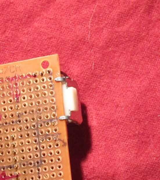 Usted necesitará cortar, doblar o perforar los agujeros para las patas del interruptor análogo para que sea mentira plana. He puesto para que el un lado de las piernas (la derecha, desde la parte inferior) colgar sobre el lado, para ahorrar espacio.