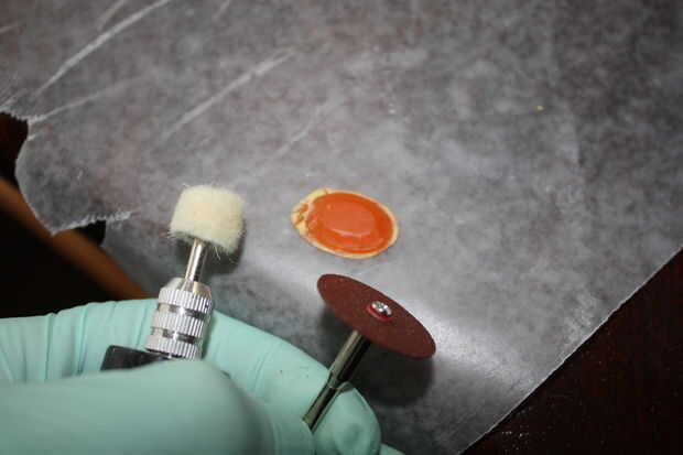 Pop las gemas hacia fuera después de que estén curados (entre 24 y 72 horas, generalmente) y limpiar cualquier exceso vierte con su herramienta rotatoria o papel cuchillo y arena. También tuve que limpiar el barro de las gemas, porque me olvidaba rociar un agente desmoldante en la arcilla. Debe lijar también ligeramente los lomos de las gemas con una lija fina para difundir la luz de lo LED. Cualquier estropear o Matidez en la superficie de la gema puede corregirse por la pintura en algunos esmalte de uñas transparente o pegamento.
