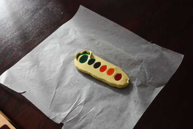 Una vez que se decantó el transparente de epoxy, mezclar cada color muybien, el agua y la base de glicerina colorantes no muy miscibles en epoxi para que tomar un gran esfuerzo para homogeneizar. Una vez mezclado, decantar el epoxy coloreado contra el palillo de dientes en cada molde de gema (recuerda que el verde es el más grande de las seis gemas), tratar de que la parte superior del molde. Si usted consigue un poco celoso con su colada, como hice con la gema verde, a construir una barrera para recoger el vertido excesivo y proteger de las otras gemas. Cualquier exceso pour puede cortado una vez que la gema se endurece.