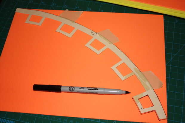 He marcado también en la plantilla de las posiciones de cada dedo y el centro de mi mano transfiere esas marcas a la espuma. Esto será muy útil una vez que las gemas y los biseles se colocan para asegurar las gemas en la posición correcta.