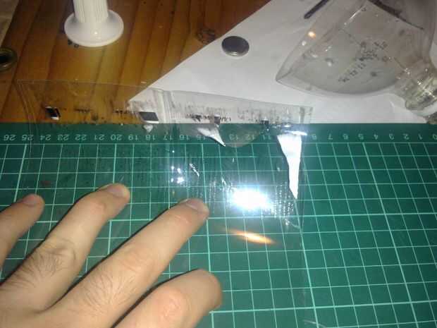 Imagen 4: Corte el cilindro verticalmente. Esto debe dejar con una lámina de plástico.