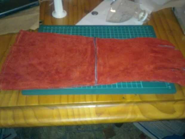Cuadro 2: Mida y corte una sección de su piel que es la misma forma que el "manga" del guante, dejando un margen de 1-2cm a cada lado.