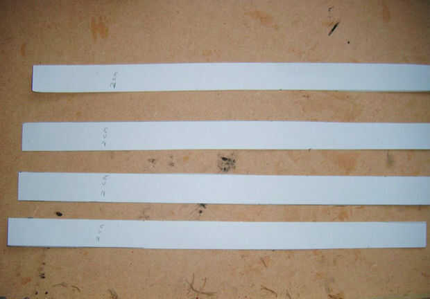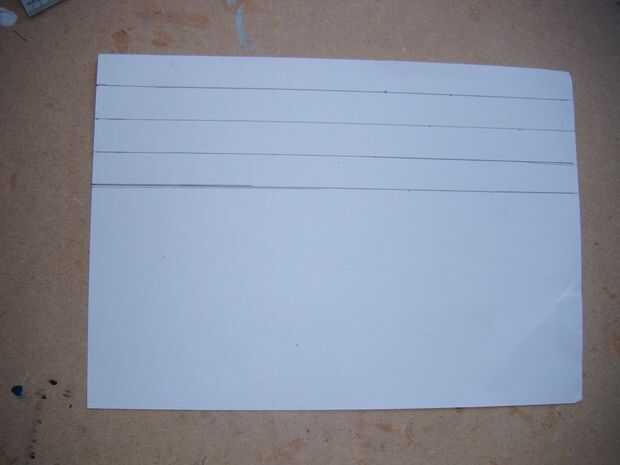 1. obtener una hoja A4 de cartón o papel, trace con una regla 2cm anchura de líneas a través de la tarjeta y repetirlo 4 veces