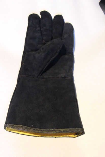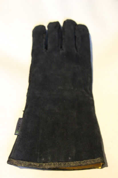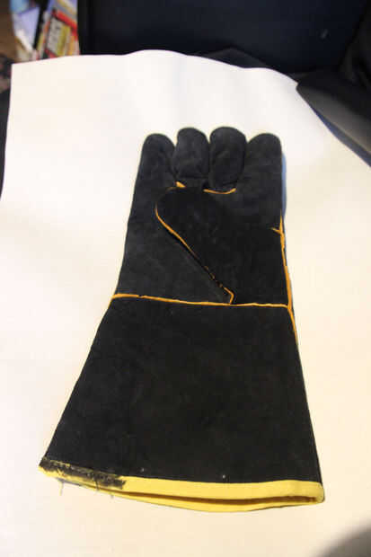 Los guantes que encontré eran de cuero negro con ribete naranja alrededor de los bordes. Se utilizó el marcador permanente negro a color en la parte negra. Esto hizo que todos fuera del negro guantes o, al menos, una aproximación cercana.
