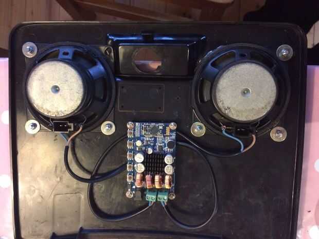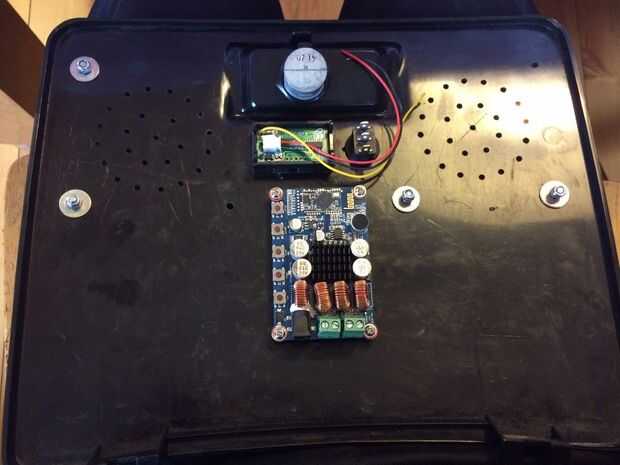 he estado mirando en instrutables y también vídeos de YouTube y foros. Esto es de dónde proceden mis ideas. para hacer este boombox poco utilicé una botella de vino caja de madera que cortar a un tamaño más pequeño, una batería de 12v 12ah, un amplif