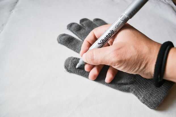 Lo primero tendrás hacer es probarte tus guantes y tocar la pantalla de tu smartphone, como si lo estuvieras utilizando, para localizador la zona de tus dedos harán contacto con la pantalla. Una vez conoces la zona, con la ayuda de un marcador, señálala. En este punto marcado es donde colocaremos el hilo conductor.