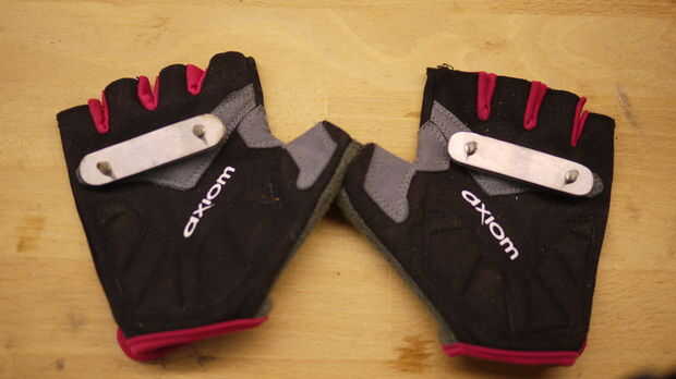 Ahora es el momento para separar las placas y eliminar las rebabas de los bordes, incluyendo todos los bordes que tocan el guante. No quiero el acero para cortar el cuero.