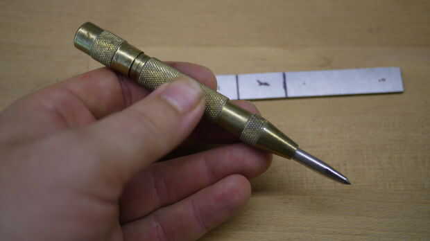 Un punzón automático tiene un resorte y un comunicado de que se activa cuando una cierta cantidad de presión se aplica a él. Este movimiento activa un pin de acero endurecido en el acero, dejando un pequeño hueco. La abolladura pequeña permite el taladro permanecer en el lugar al poner en marcha y no se deslicen en el acero. Esto es especialmente importante en mi caso cuando no tengo un taladro de columna y mi mandril está suelto.