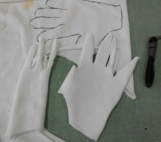 Cortar cuidadosamente cada uno de los guantes. Tendrás 4 piezas de tela cuando termines. Si usted está preocupado acerca de la tela que se mueva mientras se corta, puede poner en 3-4 pines para asegurarse de que no se mueva mientras trabajas.