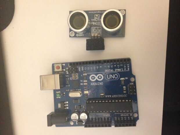 utiliza para detectar la distancia entre las manos, que cambia el tono de la nota ( http://www.mouser.com/ProductDetail/Parallax/28015/?qs=sGAEpiMZZMuVJC7Vq%252bMl53IruZP3FEtl )
