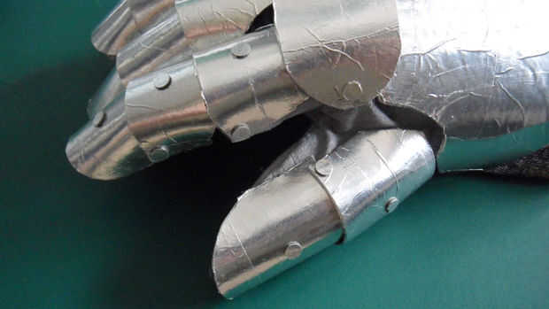 Si eres incapaz de encontrar la cinta de aluminio estoy seguro de que podría pintar la armadura en su lugar, se utilizo pintura acrílica como se dobla con el vinilo con un cincelado.