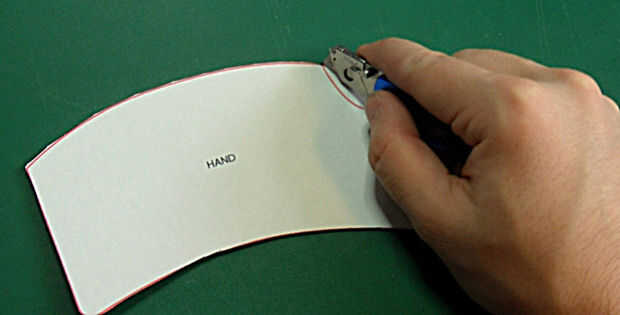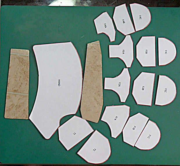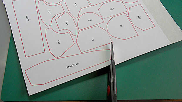 Utilice el cuchillo para cortar alrededor de las curvas cóncavas en la mano y piezas de primer dedo (F1A, F2A etc.) es más difícil hacerlo con tijeras.