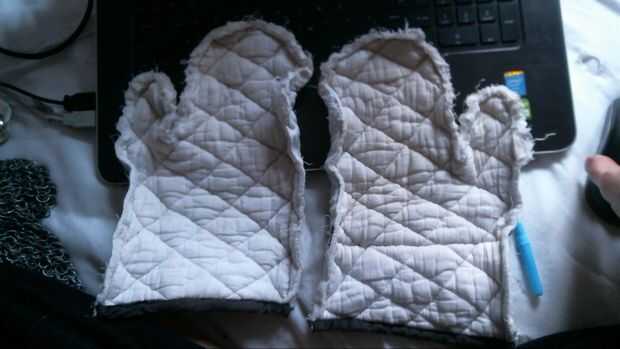 Cuando desarma la costura que va a terminar para arriba con 2 mitades de ovenmitts, que (como el mío) sean conectados por un borde en la parte inferior, sólo cortar esto y pasemos al siguiente paso!