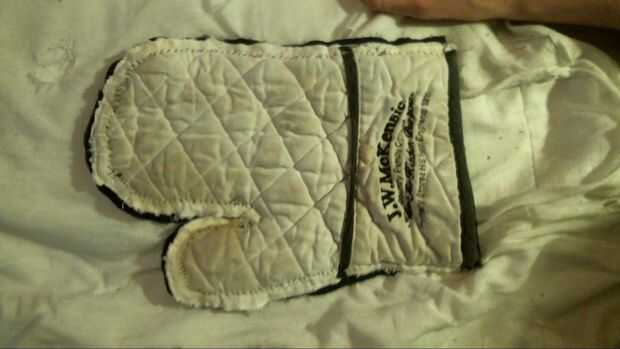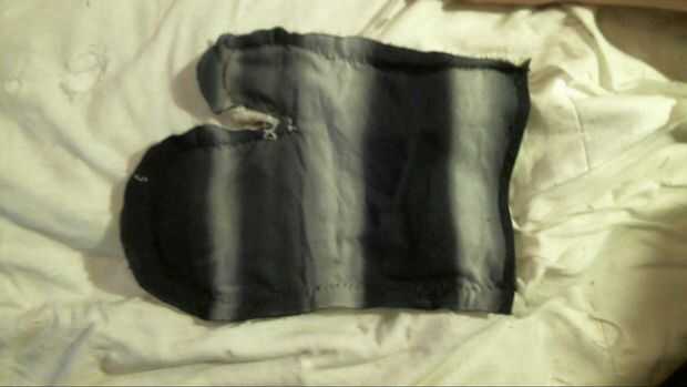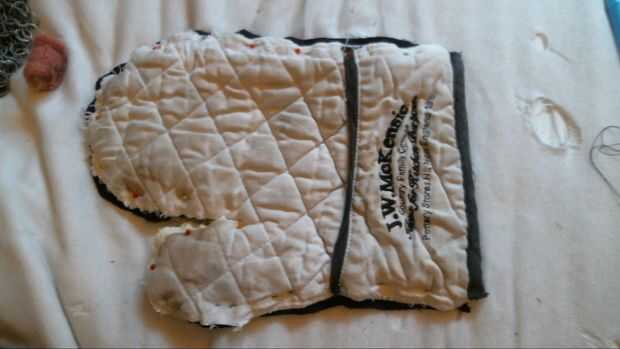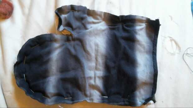 Para hacer la pieza completa un gaunlet comenzar por fijar las dos piezas juntas por el borde, luego crear una costura para conectarlos. Me gustaría añadir otra costura en la esquina entre el pulgar y la mano porque es donde la mayor parte de la tensión.