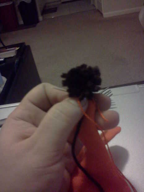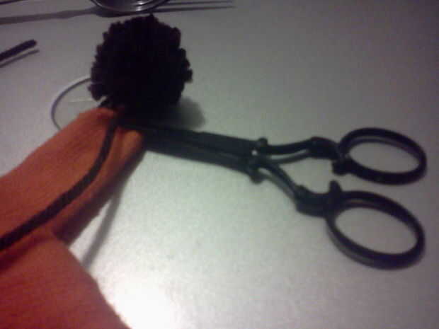 3. Ahora cortar la cola de la pom pom y corte el hilo como cerca de la punta en el pom pom pero asegúrese de no cortar la punta de su guante