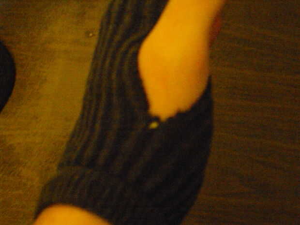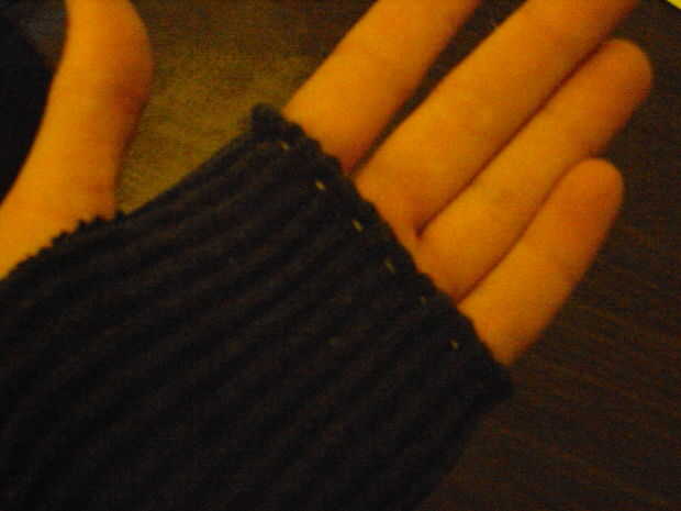 > poner dos puntos de sutura en los extremos del agujero del pulgar para asegurarse de que no mantenga cada vez más grande