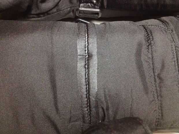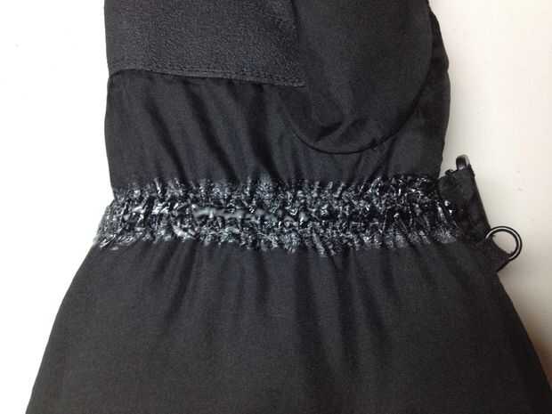 Como se mencionó anteriormente, la costura alrededor de la muñeca debe ser sellado. La parte inferior de la muñeca es una puntada (también conocido como la puntada zig zag). La parte superior de la muñeca es solo una puntada recta. La puntada recta es ocultada por la correa de la cincha de velcro, por lo que no noté tanta salida allí, pero pensé que lo haría demasiado mientras estaba en él.