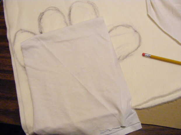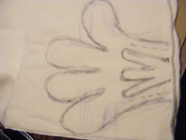 Corte un pedazo doblado de tela de forro que solo cubre la parte donde va la mano.